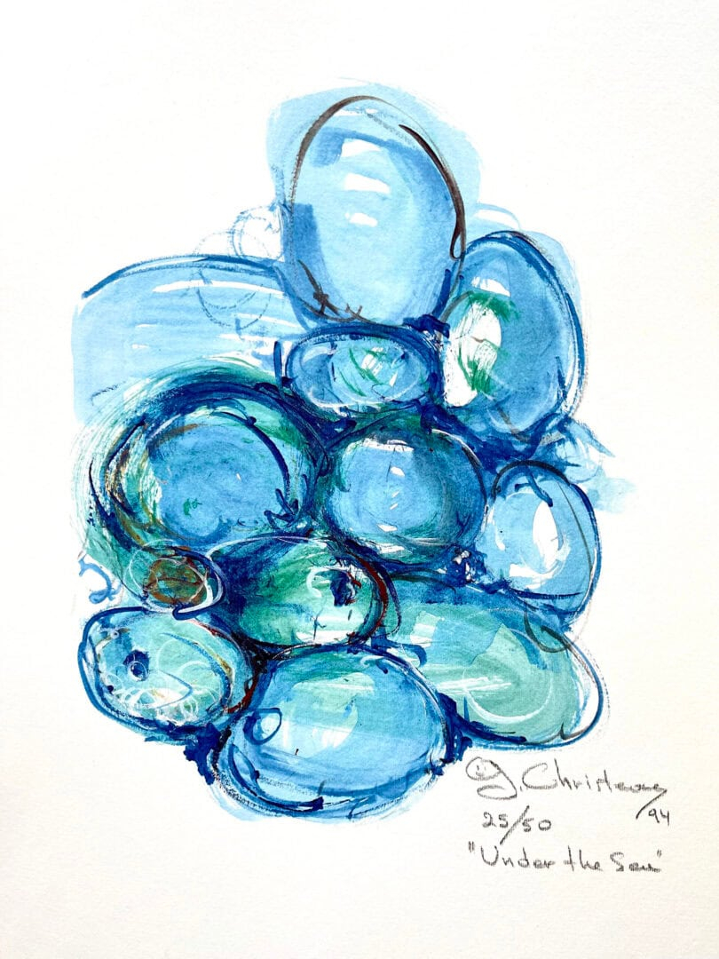 As young boys, my sister Mitsi and I used to swim in an underwater cave near our family’s castle in Mani. The shapes captured in this art piece are the pebbles we marveled at together beneath the sea.