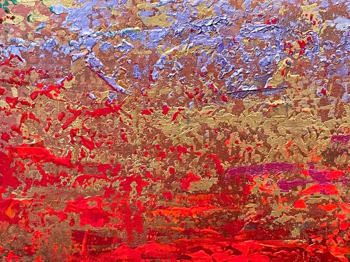 Abstract Painting Atlantic Drift by Gregory Christeas is a large abstract painting from the Parallels Series, capturing the sea’s rhythm through metallic and fluorescent acrylics. Layers of color, light, and texture translate movement and emotion, transforming any space with dynamic energy, meditative depth, and the shifting beauty of the Aegean’s tides.