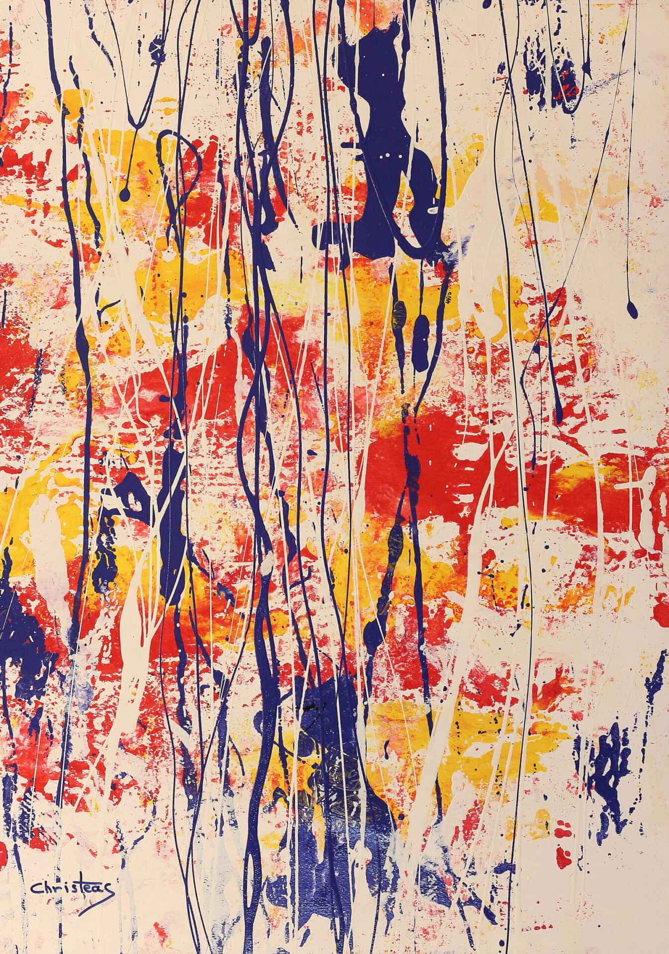 Original Abstract Painting – Syntagma Square –– The โImpressions of the Parthenonโ Series by Gregory Christeas was inspired by memories of the Parthenonโa timeless symbol of light, form, and endurance. Painted with industrial oils on heavyweight paper, these works capture shifting reflections and bold abstractions that evoke both sea and stone. More than twenty paintings emerged from this vision, first exhibited at the Cultural Olympiad in Athens, 2004. Original Abstract Painting – Syntagma Square engages in a dialogue between history and modernity, balancing strength with fluidity, permanence with change. Vibrant textures invite viewers to look beyond the surface, revealing emotional depth and a resonance that evolves with time and light.