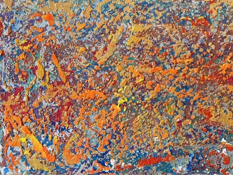 Original Abstract Painting Wondering Now โ by Gregory Christeas Parallels Series, 2025 โWondering Nowโ feels alive โ metallic and fluorescent reds, blues, and golds flow like the Aegean Sea in motion. The textured layers carry years of artistic exploration, giving the painting a soulful depth and rhythm. As the light changes, so does the work. Under black light, hidden colors awaken, revealing a whole new mood and energy.and make metatags title 60 characters description 159 characters