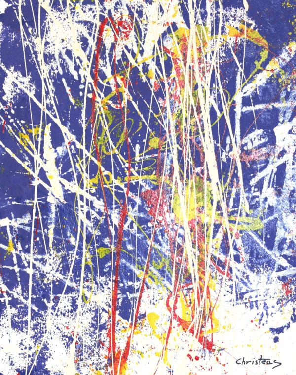 Parthenon Impressions 1 is rafted with industrial oils on heavyweight paper, this series is a testament to Christeasโ mastery and vision. Using robust techniques and materials, these artworks capture dynamic shifts in reflection, evoking imagery of the sea meeting stone. The bold abstractions transform memories into visual narratives, pairing contemporary aesthetics with textures reminiscent of ancient resilience.