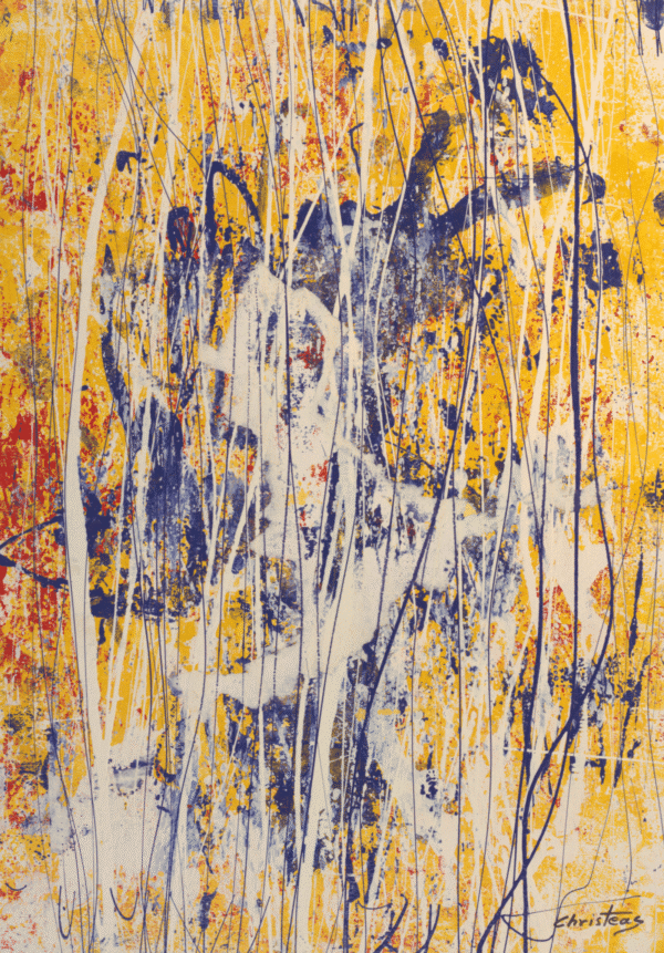 Parthenon Impressions 80–The โImpressions of the Parthenonโ Series by Gregory Christeas was inspired by memories of the Parthenonโa timeless symbol of light, form, and endurance. Painted with industrial oils on heavyweight paper, these works capture shifting reflections and bold abstractions that evoke both sea and stone. More than twenty paintings emerged from this vision, first exhibited at the Cultural Olympiad in Athens, 2004. Parthenon Impressions 80 engages in a dialogue between history and modernity, balancing strength with fluidity, permanence with change. Vibrant textures invite viewers to look beyond the surface, revealing emotional depth and a resonance that evolves with time and light.