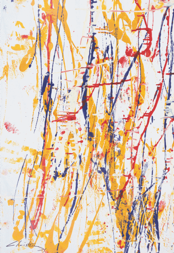 Parthenon Impressions 81– The “Impressions of the Parthenon” Series by Gregory Christeas was inspired by memories of the Parthenon—a timeless symbol of light, form, and endurance. Painted with industrial oils on heavyweight paper, these works capture shifting reflections and bold abstractions that evoke both sea and stone. More than twenty paintings emerged from this vision, first exhibited at the Cultural Olympiad in Athens, 2004. Parthenon Impressions 81 engages in a dialogue between history and modernity, balancing strength with fluidity, permanence with change. Vibrant textures invite viewers to look beyond the surface, revealing emotional depth and a resonance that evolves with time and light.