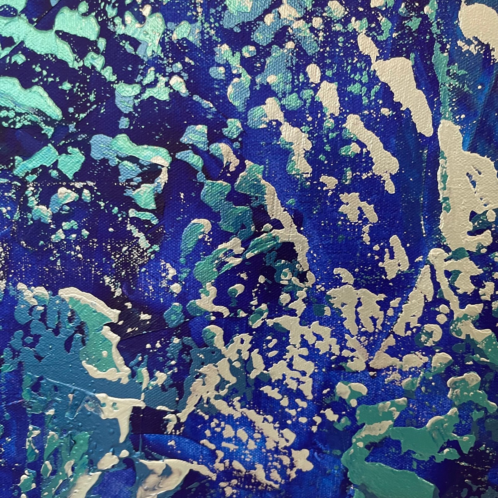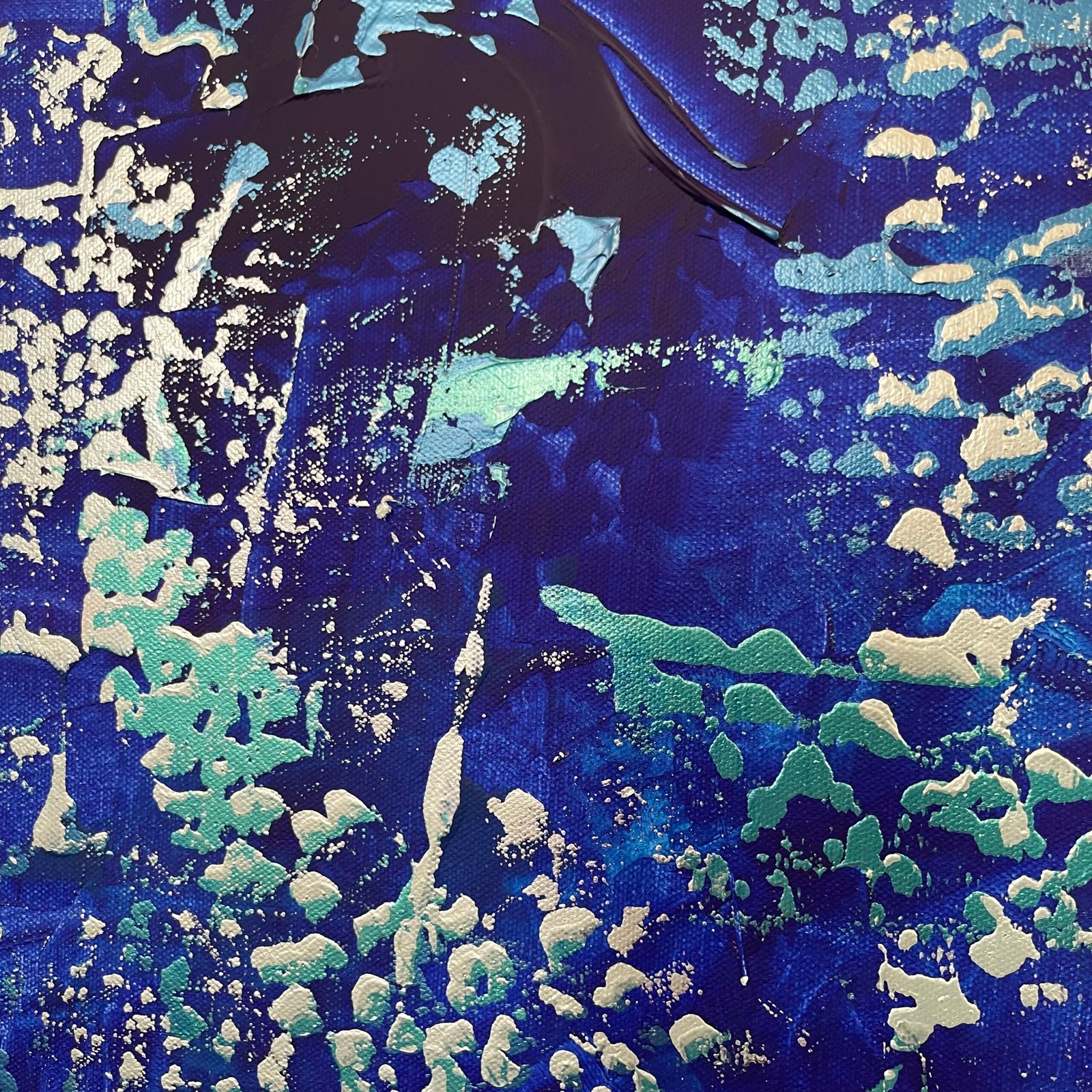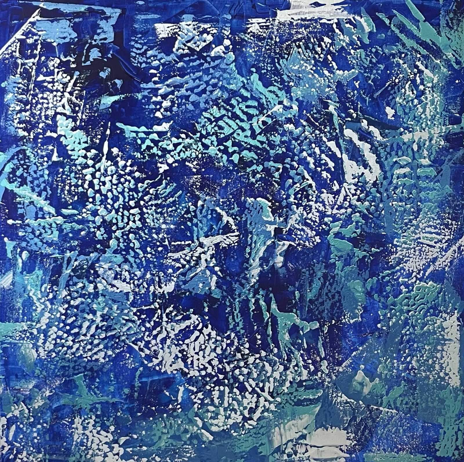 Silent Dialogue expresses Gregory Christeas’ vision of abstraction as an inner conversation shaped by memory, tension, and emotional movement. Layers of deep blue and fractured turquoise unfold like shifting states of thought, where structure and fluidity exist in continuous exchange. The surface balances intention and chance, revealing luminous passages that emerge, recede, and return.